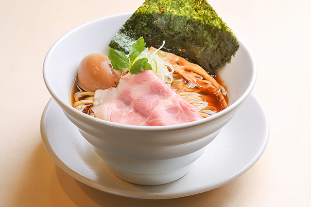 大阪黒門市場 鰹節の山長商店の出汁をベースにした無化調スープに、 オリジナルの配合で店内製麺する自家製麺を楽しめる中華そば店です。