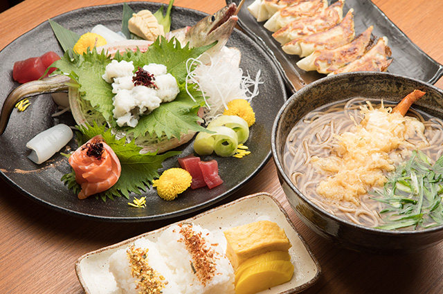 お昼は890円のそば定食をはじめセットメニューがメインです。にぎり寿司から色々やってます。週替わりのおすすめメニューをまごごろこめてつくっています。あとおいしい焼きたてのタコ焼きもやってます。ぜひおいで下さい。