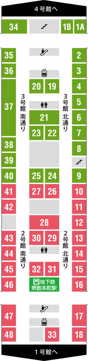 船場センタービル2・3号館地下2階『ジョイ船場50』のショップ情報です。フロアマップの店番号、又は一覧のショップ名を選択すると各店舗紹介ページへ移動します。